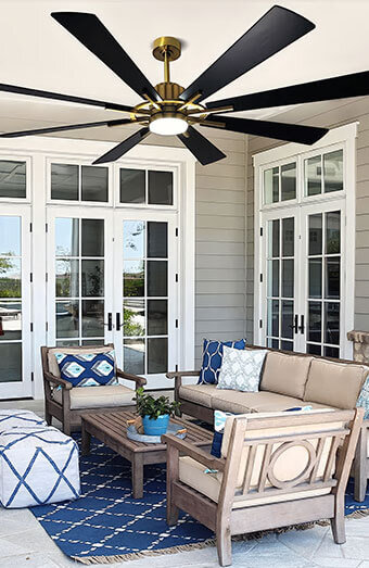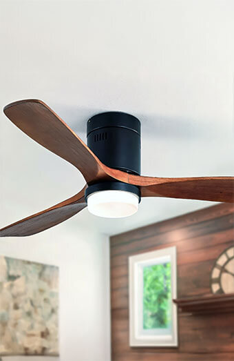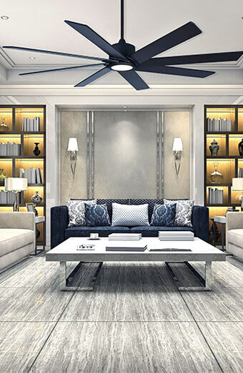 Professional installation of new ceiling fans in bedrooms, living rooms, patios and offices, with options for standard and modern low-profile designs at custom mounting heights.